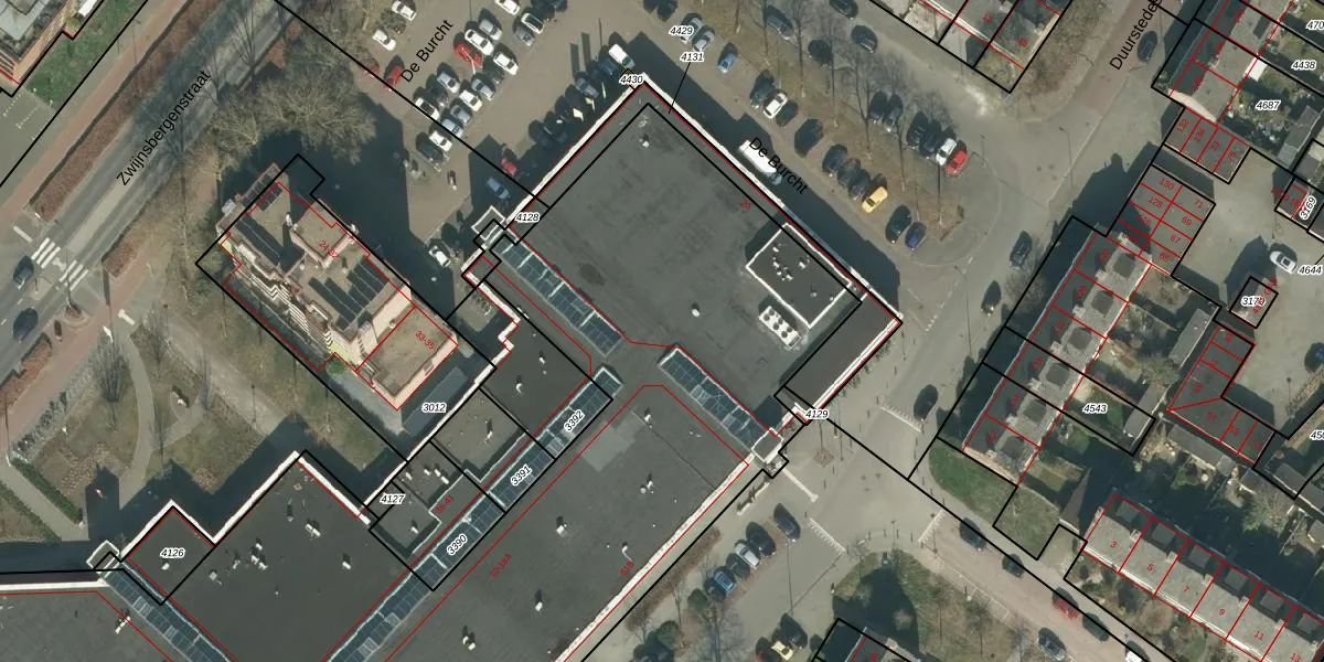 Het perceel waarop De Burcht 20 staat heeft een oppervlakte van 7645 m². Dit is een zeer groot perceel. De perceeloppervlakte wordt geregistreerd door het Kadaster. Gedetailleerde informatie over de maten van dit perceel kunt u vinden in het rapport Kadastrale kaart met maatvoering van De Burcht 20.