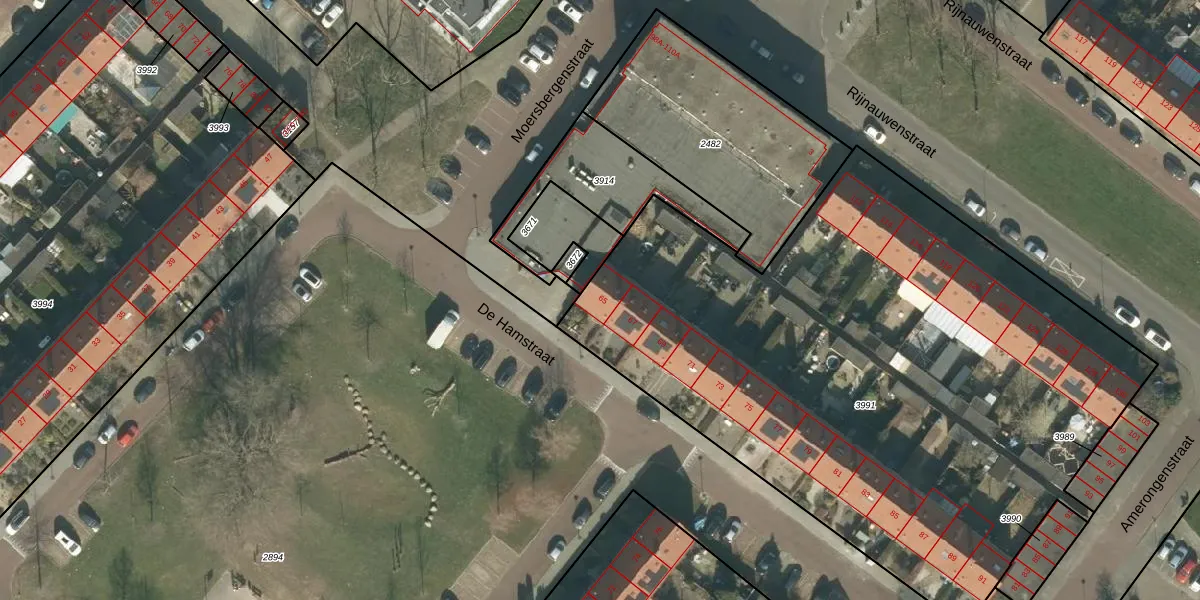 Het perceel waarop De Hamstraat 65 staat heeft een oppervlakte van 3995 m². Dit is een zeer groot perceel. De perceeloppervlakte wordt geregistreerd door het Kadaster. Gedetailleerde informatie over de maten van dit perceel kunt u vinden in het rapport Kadastrale kaart met maatvoering van De Hamstraat 65.