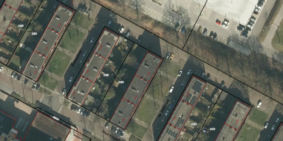 de Wetstraat 9-B is gelegen op kadastraal perceel BDA00D9478. Deze kadastrale aanduiding is uniek en wordt gebruikt door het Kadaster om eigendomsrechten en andere zakelijke rechten vast te leggen. Het perceel maakt onderdeel uit van de kadastrale gemeente Breda.