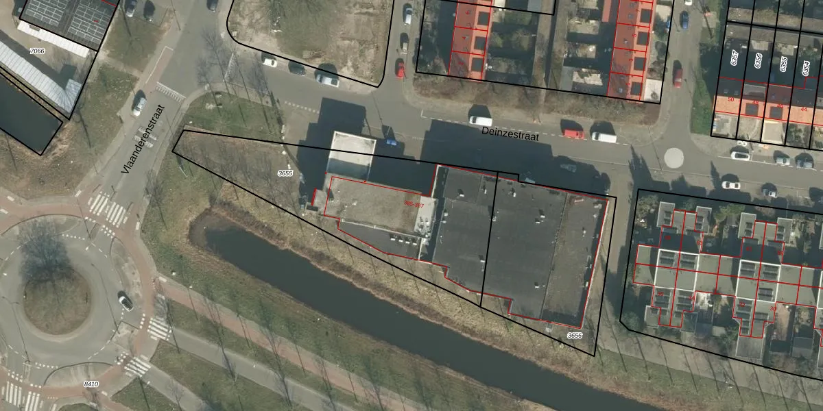 Deinzestraat 385 is gelegen op kadastraal perceel BDA00G3655. Deze kadastrale aanduiding is uniek en wordt gebruikt door het Kadaster om eigendomsrechten en andere zakelijke rechten vast te leggen. Het perceel maakt onderdeel uit van de kadastrale gemeente Breda.