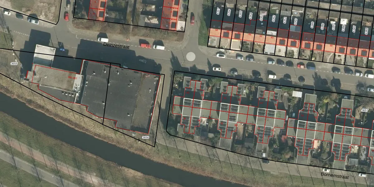 Het perceel waarop Deinzestraat 65 staat heeft een oppervlakte van 7350 m². Dit is een zeer groot perceel. De perceeloppervlakte wordt geregistreerd door het Kadaster. Gedetailleerde informatie over de maten van dit perceel kunt u vinden in het rapport Kadastrale kaart met maatvoering van Deinzestraat 65.
