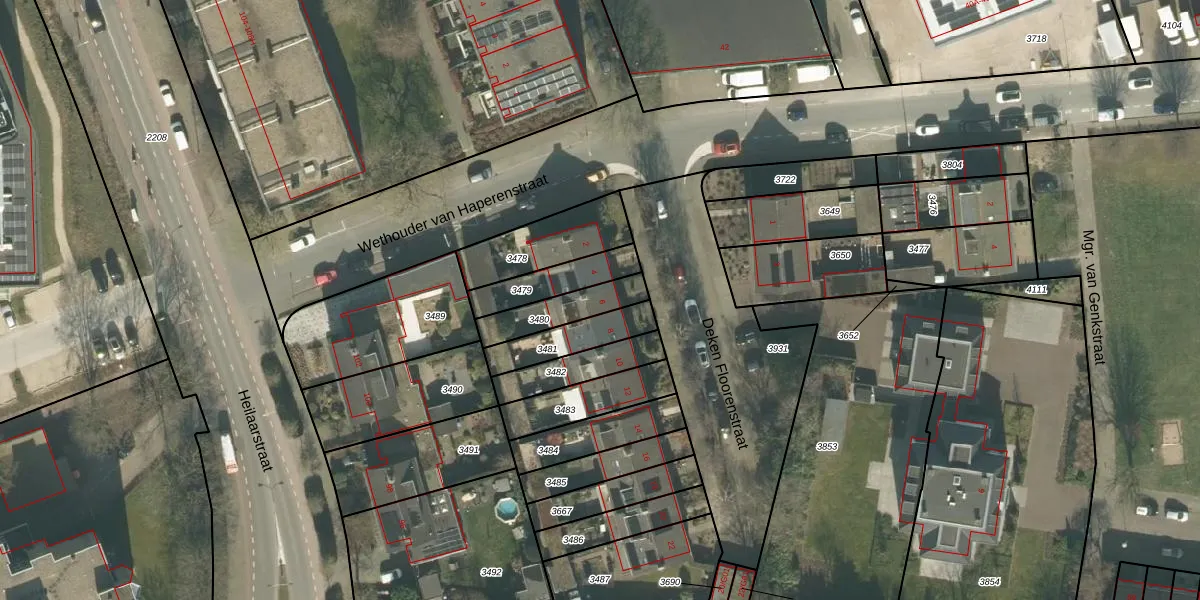Deken Floorenstraat 6 is gelegen op kadastraal perceel PCH00H3480. Deze kadastrale aanduiding is uniek en wordt gebruikt door het Kadaster om eigendomsrechten en andere zakelijke rechten vast te leggen. Het perceel maakt onderdeel uit van de kadastrale gemeente Princenhage.