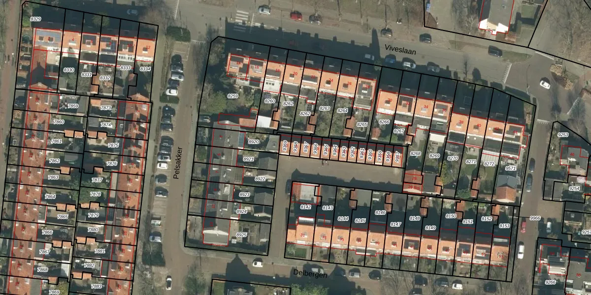 Gebruik de zoekbalk of klik op een perceel voor informatie over de adressen binnen dit perceel.