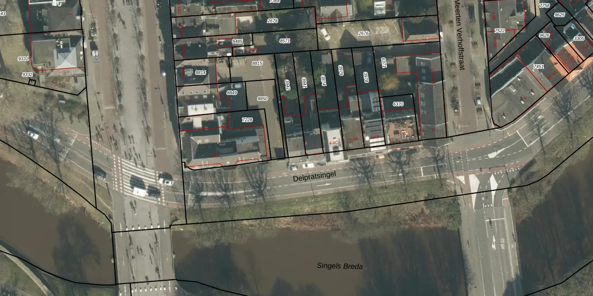 Delpratsingel 2 is gelegen op kadastraal perceel BDA00B3942. Deze kadastrale aanduiding is uniek en wordt gebruikt door het Kadaster om eigendomsrechten en andere zakelijke rechten vast te leggen. Het perceel maakt onderdeel uit van de kadastrale gemeente Breda.