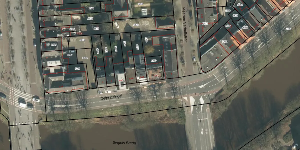 Delpratsingel 7-A is gelegen op kadastraal perceel BDA00B6370. Deze kadastrale aanduiding is uniek en wordt gebruikt door het Kadaster om eigendomsrechten en andere zakelijke rechten vast te leggen. Het perceel maakt onderdeel uit van de kadastrale gemeente Breda.