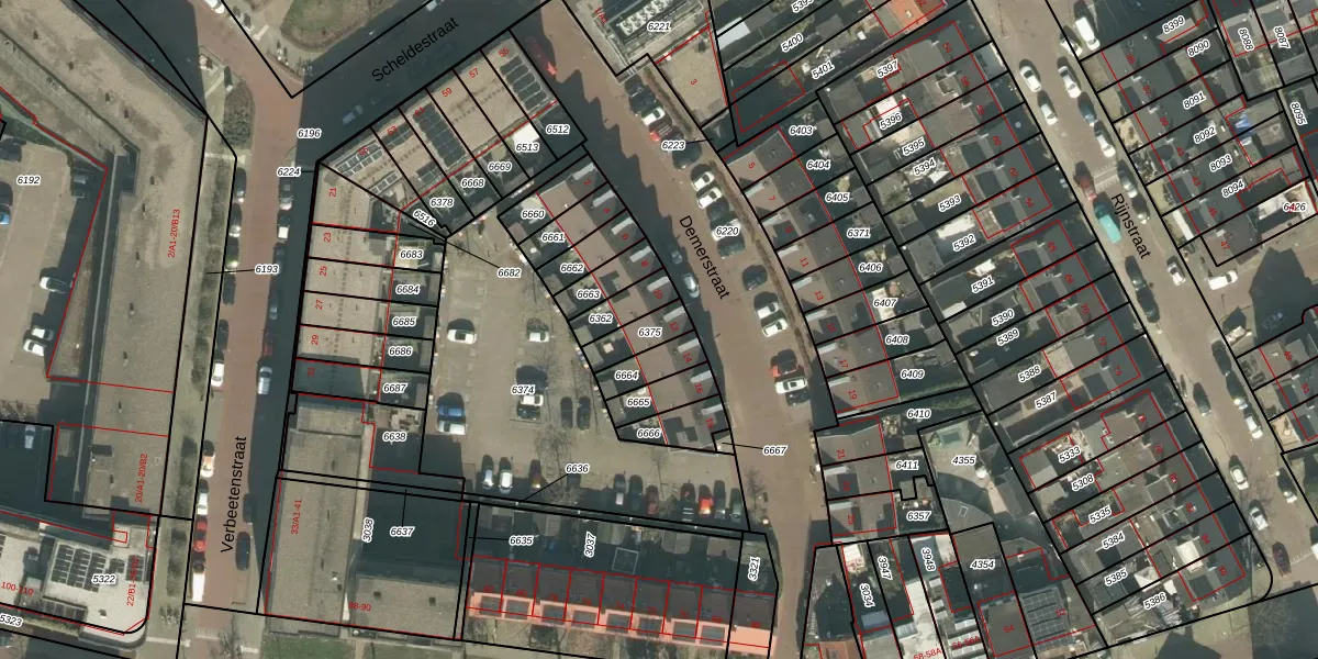 Het perceel waarop Demerstraat 12 staat heeft een oppervlakte van 82 m². Dit is een klein perceel. De perceeloppervlakte wordt geregistreerd door het Kadaster. Gedetailleerde informatie over de maten van dit perceel kunt u vinden in het rapport Kadastrale kaart met maatvoering van Demerstraat 12.