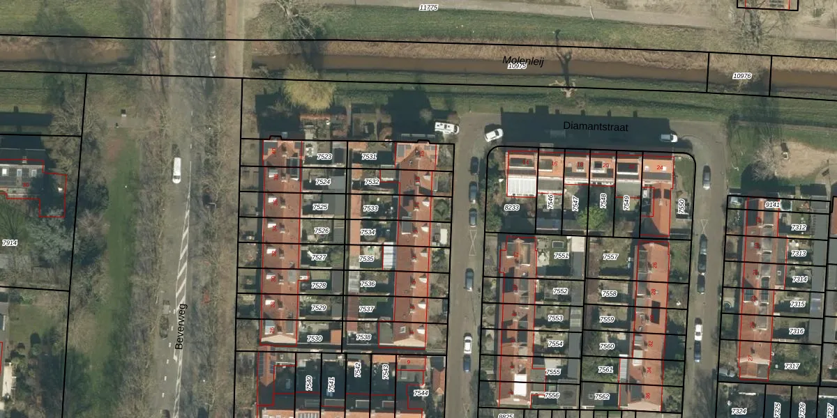 Diamantstraat 11 is gelegen op kadastraal perceel BDA00D7533. Deze kadastrale aanduiding is uniek en wordt gebruikt door het Kadaster om eigendomsrechten en andere zakelijke rechten vast te leggen. Het perceel maakt onderdeel uit van de kadastrale gemeente Breda.