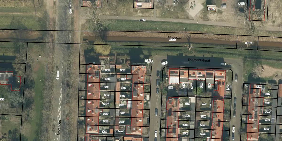 Het perceel waarop Diamantstraat 15 staat heeft een oppervlakte van 162 m². Dit is een middelgroot perceel. De perceeloppervlakte wordt geregistreerd door het Kadaster. Gedetailleerde informatie over de maten van dit perceel kunt u vinden in het rapport Kadastrale kaart met maatvoering van Diamantstraat 15.