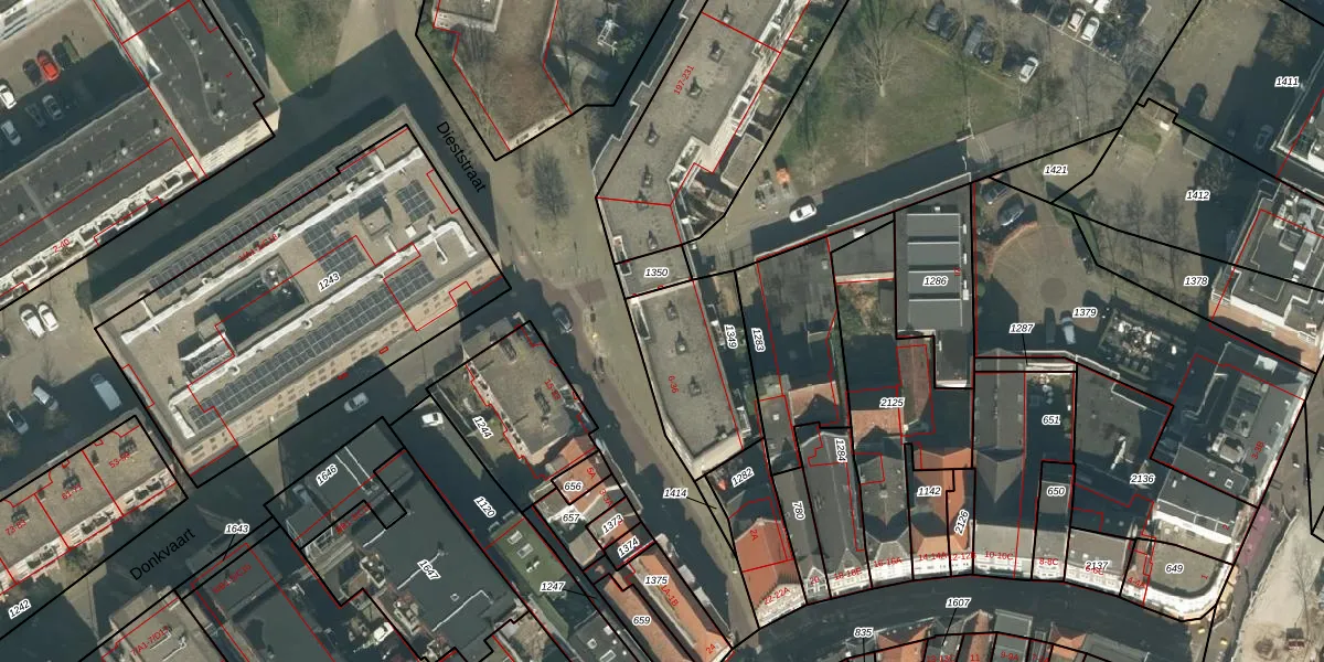 Het perceel waarop Dieststraat 18 staat heeft een oppervlakte van 416 m². Dit is een groot perceel. De perceeloppervlakte wordt geregistreerd door het Kadaster. Gedetailleerde informatie over de maten van dit perceel kunt u vinden in het rapport Kadastrale kaart met maatvoering van Dieststraat 18.