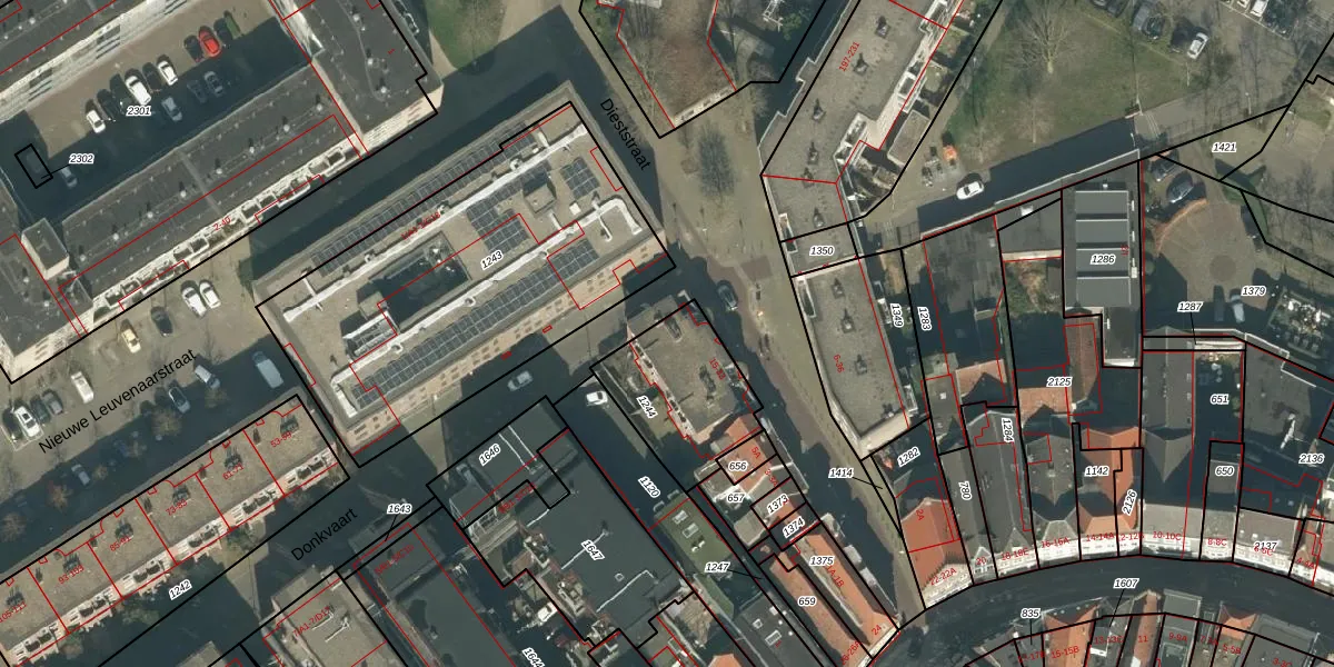 Het perceel waarop Dieststraat 33 staat heeft een oppervlakte van 399 m². Dit is een groot perceel. De perceeloppervlakte wordt geregistreerd door het Kadaster. Gedetailleerde informatie over de maten van dit perceel kunt u vinden in het rapport Kadastrale kaart met maatvoering van Dieststraat 33.