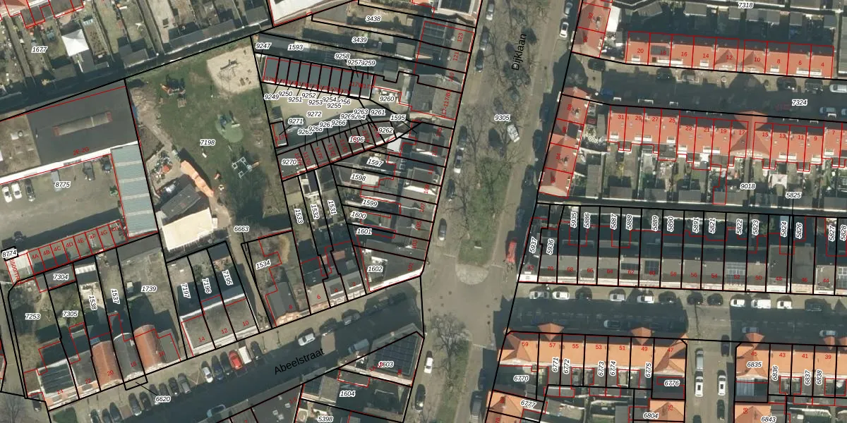 Gebruik de zoekbalk of klik op een perceel voor informatie over de adressen binnen dit perceel.