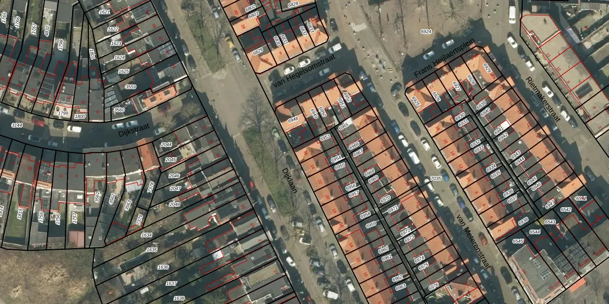 Gebruik de zoekbalk of klik op een perceel voor informatie over de adressen binnen dit perceel.