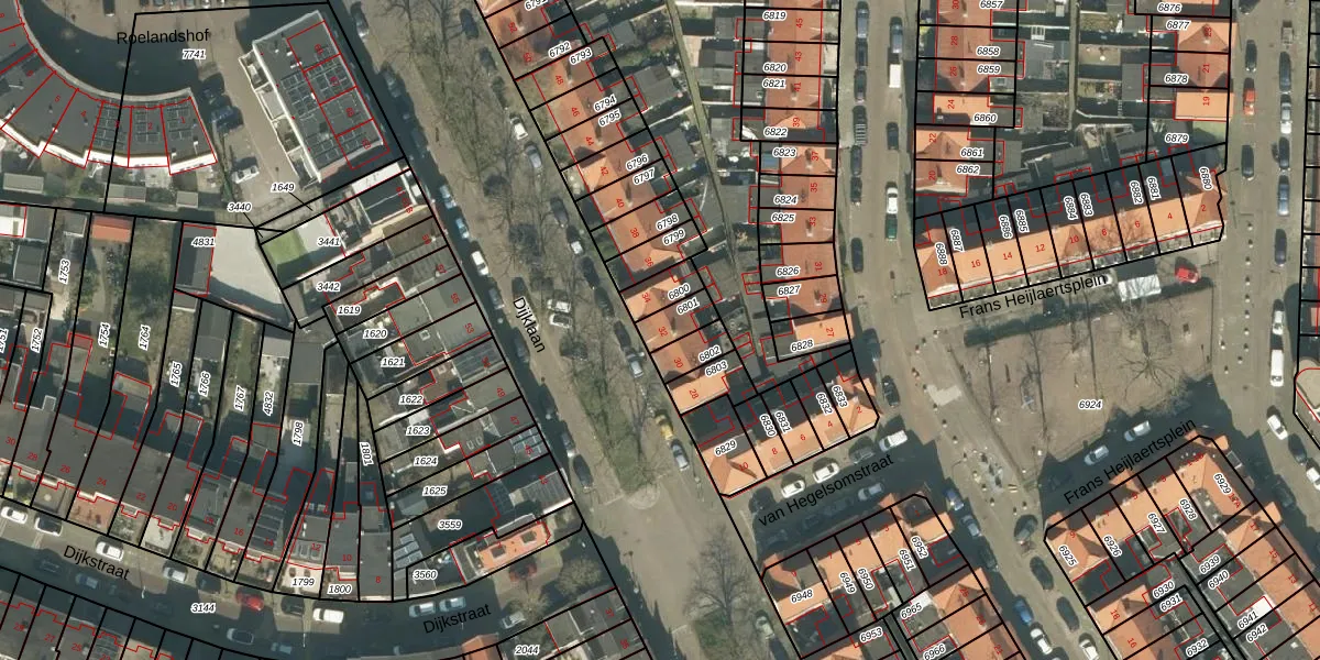 Gebruik de zoekbalk of klik op een perceel voor informatie over de adressen binnen dit perceel.