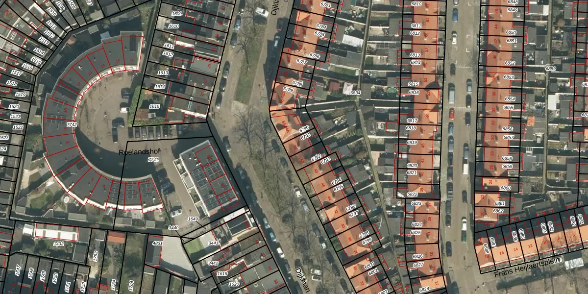 Het perceel waarop Dijklaan 52 staat heeft een oppervlakte van 63 m². Dit is een klein perceel. De perceeloppervlakte wordt geregistreerd door het Kadaster. Gedetailleerde informatie over de maten van dit perceel kunt u vinden in het rapport Kadastrale kaart met maatvoering van Dijklaan 52.