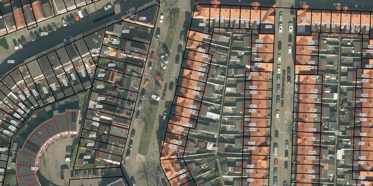 Gebruik de zoekbalk of klik op een perceel voor informatie over de adressen binnen dit perceel.