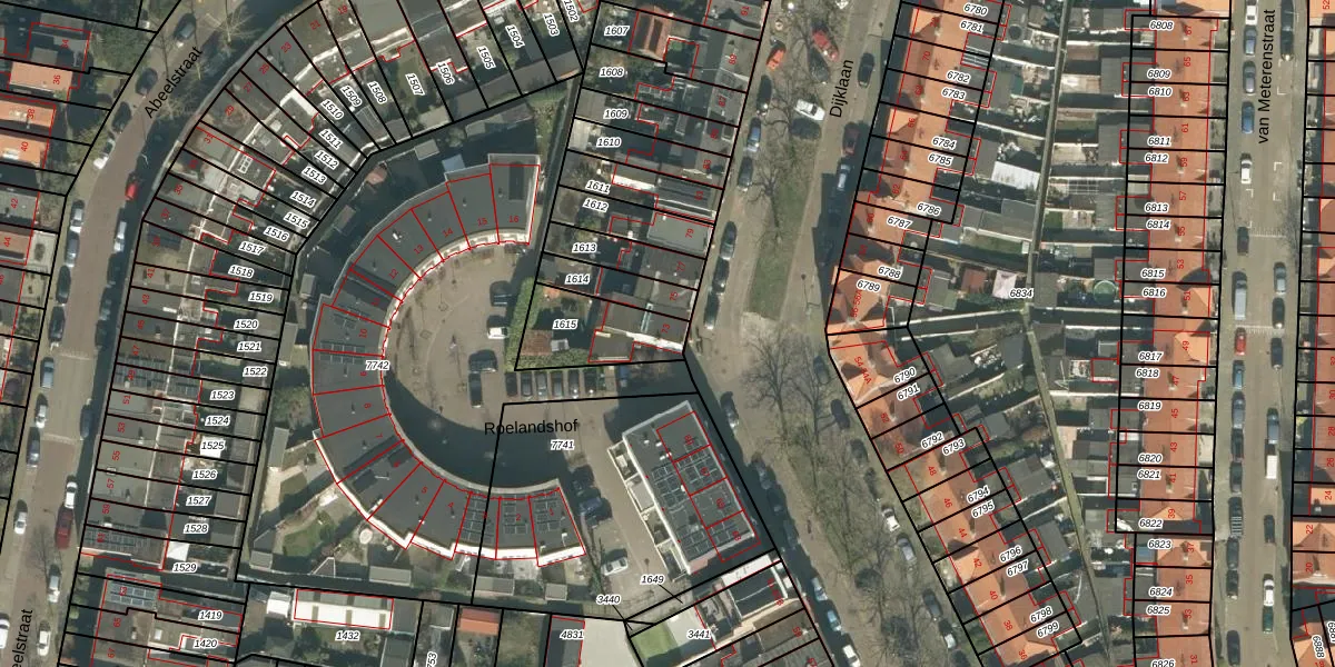 Gebruik de zoekbalk of klik op een perceel voor informatie over de adressen binnen dit perceel.