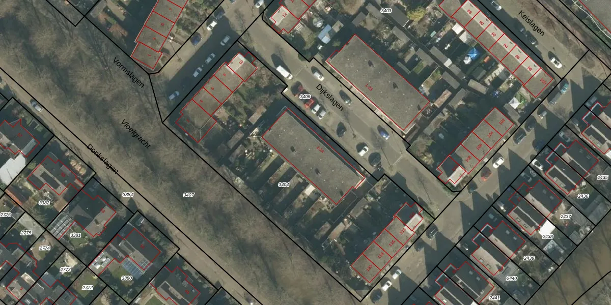 Dijkslagen 18 is gelegen op kadastraal perceel BDA00I3404. Deze kadastrale aanduiding is uniek en wordt gebruikt door het Kadaster om eigendomsrechten en andere zakelijke rechten vast te leggen. Het perceel maakt onderdeel uit van de kadastrale gemeente Breda.