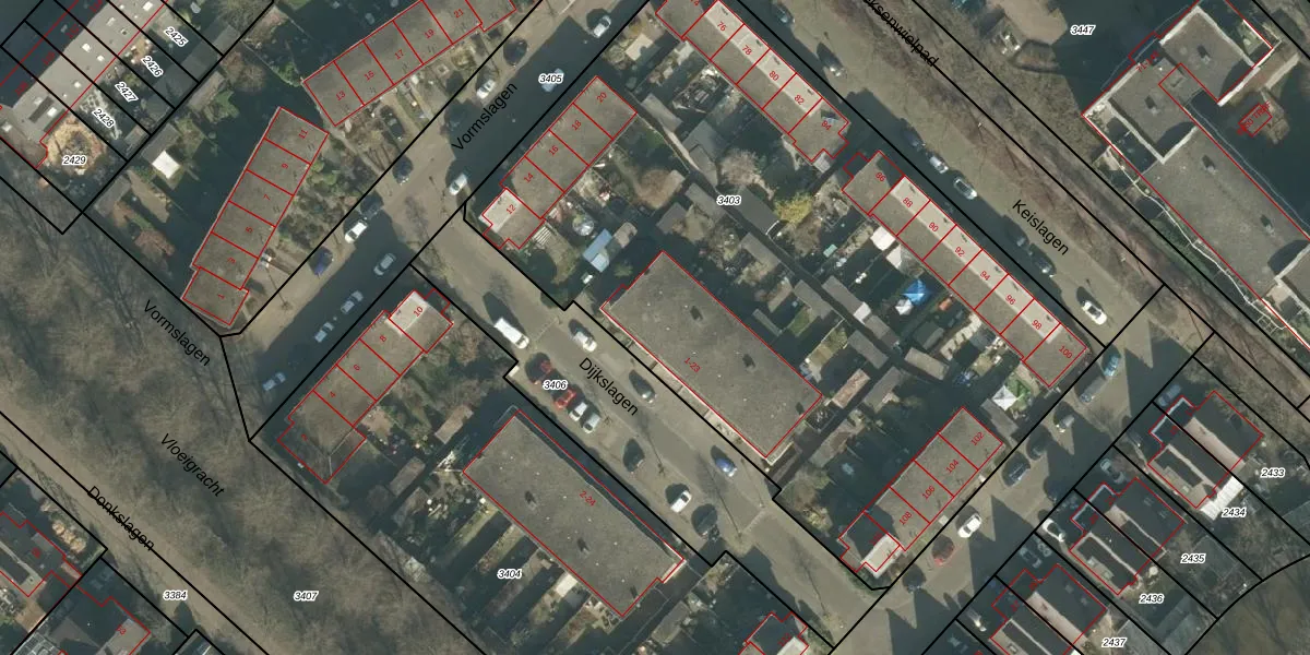 Dijkslagen 5 is gelegen op kadastraal perceel BDA00I3403. Deze kadastrale aanduiding is uniek en wordt gebruikt door het Kadaster om eigendomsrechten en andere zakelijke rechten vast te leggen. Het perceel maakt onderdeel uit van de kadastrale gemeente Breda.