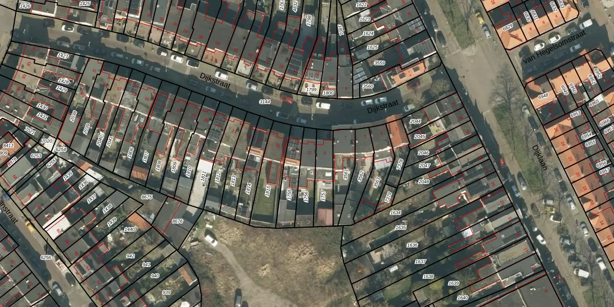 Dijkstraat 11 is gelegen op kadastraal perceel BDA00E1756. Deze kadastrale aanduiding is uniek en wordt gebruikt door het Kadaster om eigendomsrechten en andere zakelijke rechten vast te leggen. Het perceel maakt onderdeel uit van de kadastrale gemeente Breda.