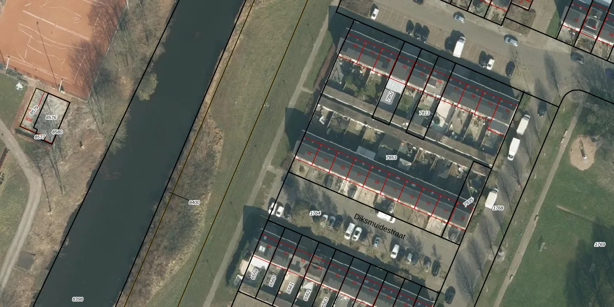 Het perceel waarop Diksmuidestraat 61 staat heeft een oppervlakte van 2765 m². Dit is een zeer groot perceel. De perceeloppervlakte wordt geregistreerd door het Kadaster. Gedetailleerde informatie over de maten van dit perceel kunt u vinden in het rapport Kadastrale kaart met maatvoering van Diksmuidestraat 61.