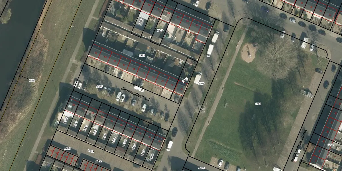 Het perceel waarop Diksmuidestraat 77 staat heeft een oppervlakte van 2765 m². Dit is een zeer groot perceel. De perceeloppervlakte wordt geregistreerd door het Kadaster. Gedetailleerde informatie over de maten van dit perceel kunt u vinden in het rapport Kadastrale kaart met maatvoering van Diksmuidestraat 77.
