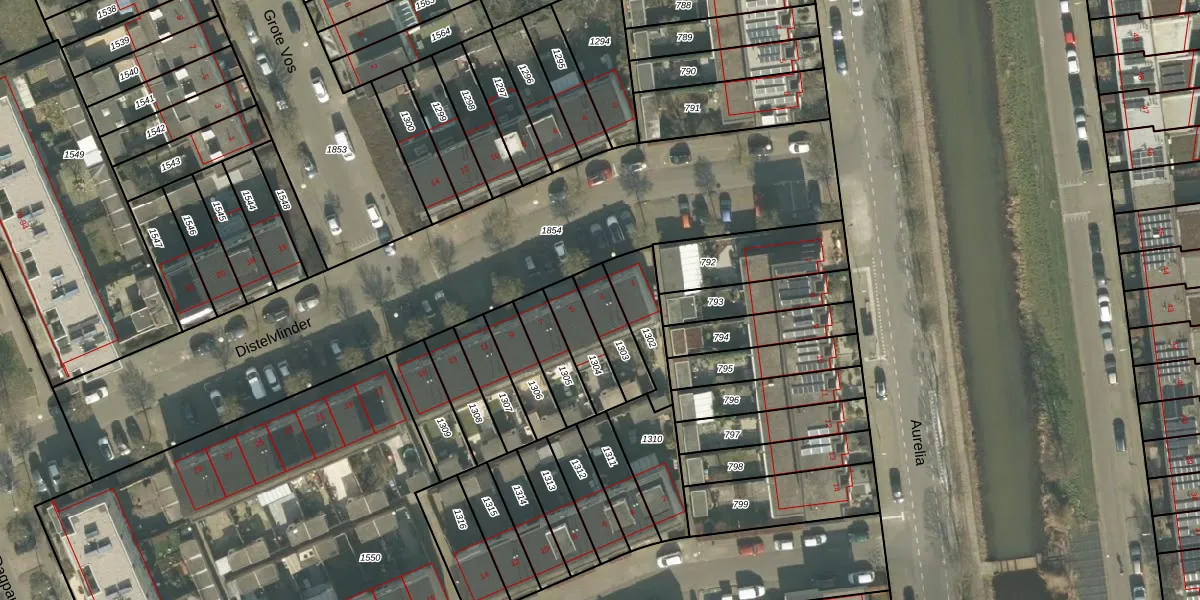 Gebruik de zoekbalk of klik op een perceel voor informatie over de adressen binnen dit perceel.