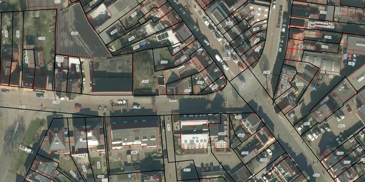 Het perceel waarop Doelen 43 staat heeft een oppervlakte van 117 m². Dit is een middelgroot perceel. De perceeloppervlakte wordt geregistreerd door het Kadaster. Gedetailleerde informatie over de maten van dit perceel kunt u vinden in het rapport Kadastrale kaart met maatvoering van Doelen 43.