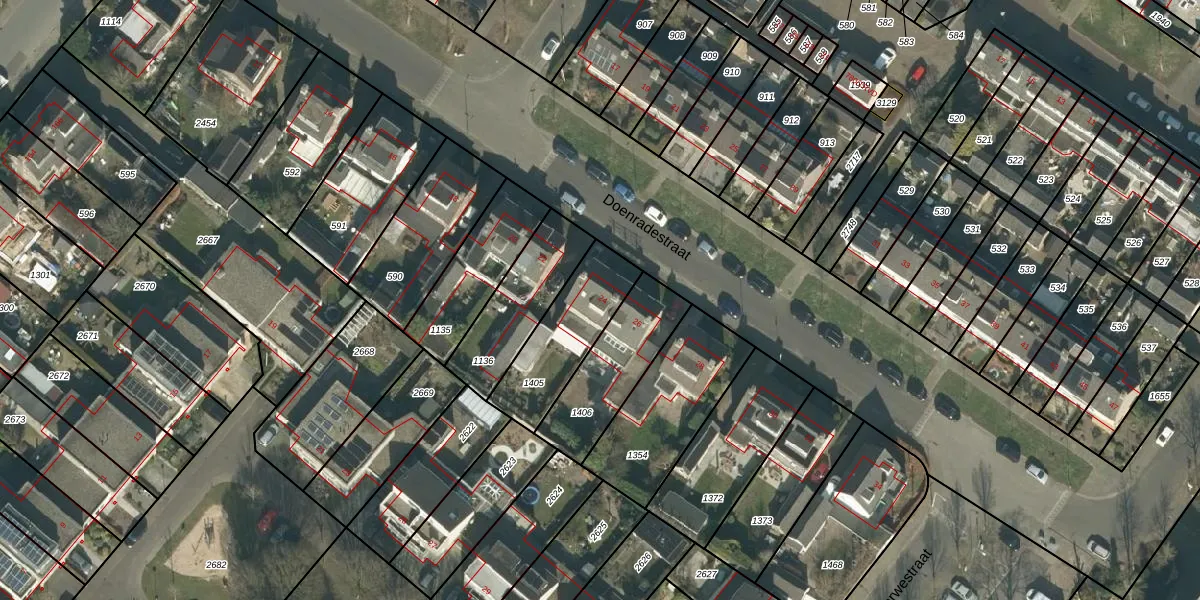 Het perceel waarop Doenradestraat 24 staat heeft een oppervlakte van 316 m². Dit is een groot perceel. De perceeloppervlakte wordt geregistreerd door het Kadaster. Gedetailleerde informatie over de maten van dit perceel kunt u vinden in het rapport Kadastrale kaart met maatvoering van Doenradestraat 24.