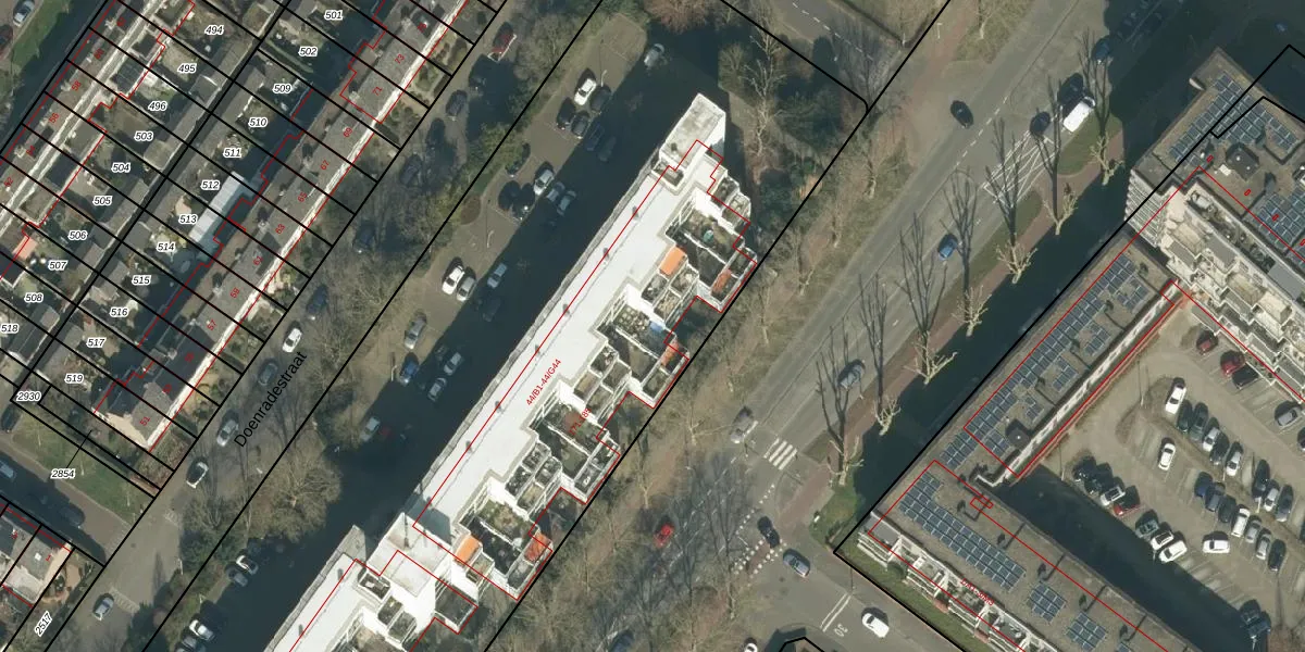 Doenradestraat 44-E31 is gelegen op kadastraal perceel GNK02M1535. Deze kadastrale aanduiding is uniek en wordt gebruikt door het Kadaster om eigendomsrechten en andere zakelijke rechten vast te leggen. Het perceel maakt onderdeel uit van de kadastrale gemeente Ginneken.