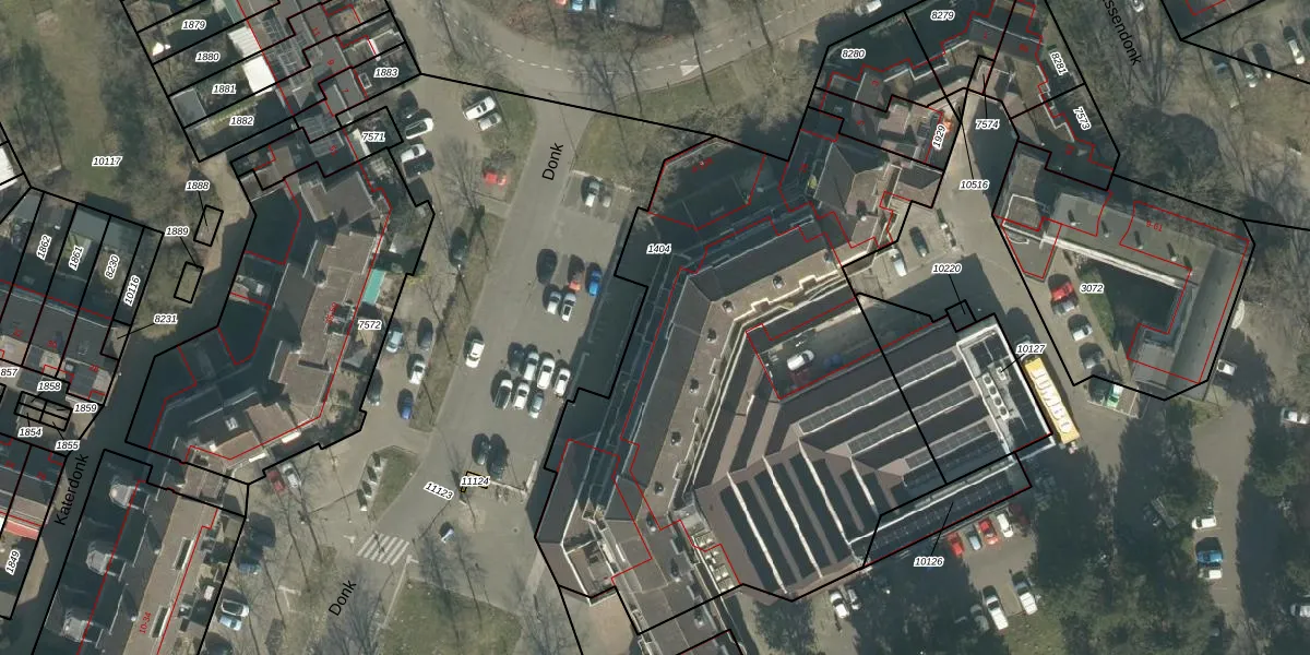 Donk 12 is gelegen op kadastraal perceel BDA00H1404. Deze kadastrale aanduiding is uniek en wordt gebruikt door het Kadaster om eigendomsrechten en andere zakelijke rechten vast te leggen. Het perceel maakt onderdeel uit van de kadastrale gemeente Breda.