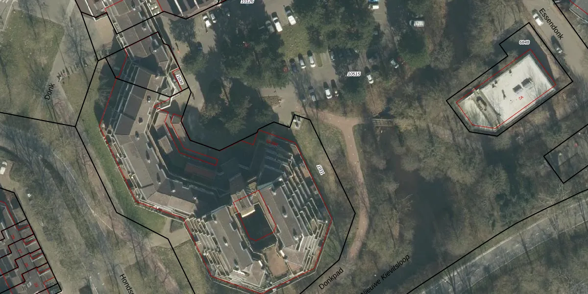 Het perceel waarop Donk 44 staat heeft een oppervlakte van 4528 m². Dit is een zeer groot perceel. De perceeloppervlakte wordt geregistreerd door het Kadaster. Gedetailleerde informatie over de maten van dit perceel kunt u vinden in het rapport Kadastrale kaart met maatvoering van Donk 44.