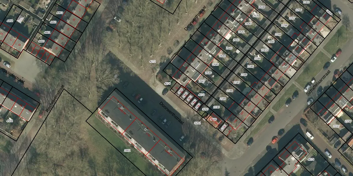 Het perceel waarop Doorwerthstraat 20 staat heeft een oppervlakte van 19 m². Dit is een klein perceel. De perceeloppervlakte wordt geregistreerd door het Kadaster. Gedetailleerde informatie over de maten van dit perceel kunt u vinden in het rapport Kadastrale kaart met maatvoering van Doorwerthstraat 20.