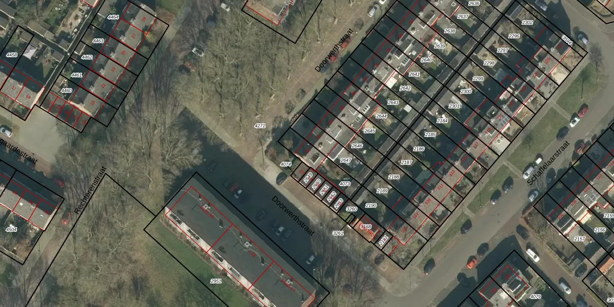 Het perceel waarop Doorwerthstraat 22 staat heeft een oppervlakte van 186 m². Dit is een middelgroot perceel. De perceeloppervlakte wordt geregistreerd door het Kadaster. Gedetailleerde informatie over de maten van dit perceel kunt u vinden in het rapport Kadastrale kaart met maatvoering van Doorwerthstraat 22.