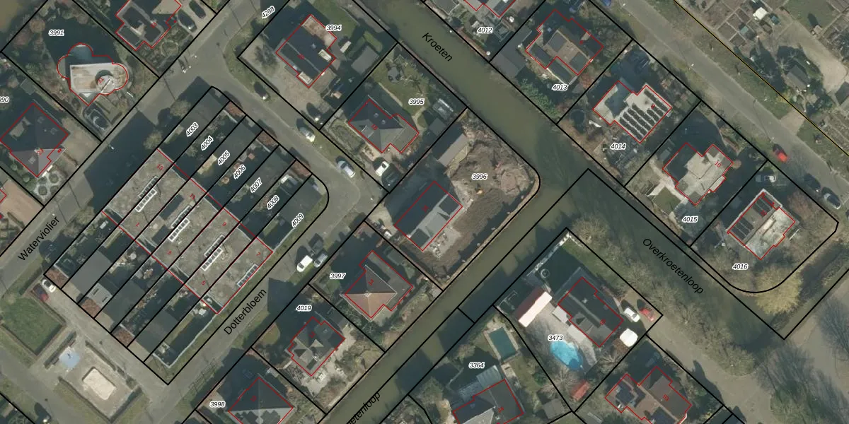 Gebruik de zoekbalk of klik op een perceel voor informatie over de adressen binnen dit perceel.