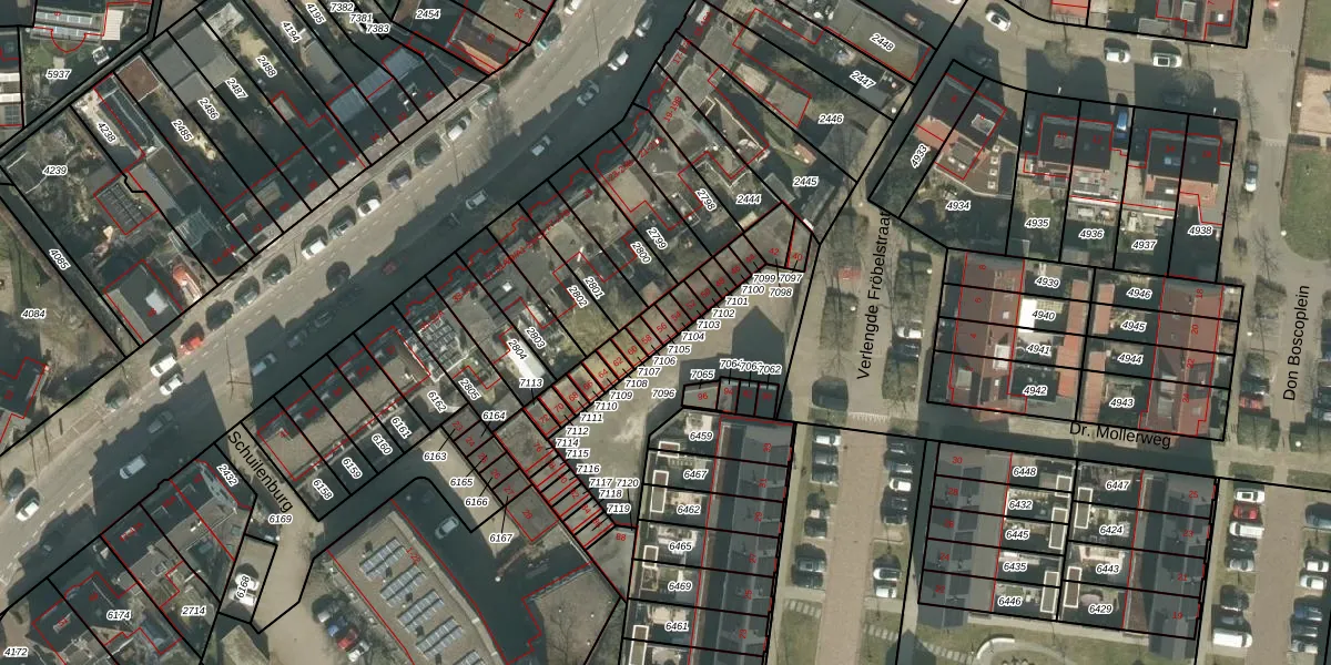 Gebruik de zoekbalk of klik op een perceel voor informatie over de adressen binnen dit perceel.