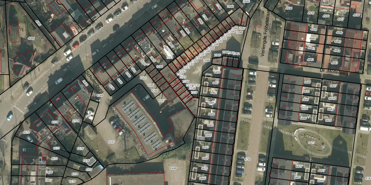 Gebruik de zoekbalk of klik op een perceel voor informatie over de adressen binnen dit perceel.