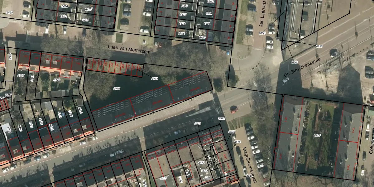 Dr. Struyckenstraat 104 is gelegen op kadastraal perceel PCH00I4475. Deze kadastrale aanduiding is uniek en wordt gebruikt door het Kadaster om eigendomsrechten en andere zakelijke rechten vast te leggen. Het perceel maakt onderdeel uit van de kadastrale gemeente Princenhage.