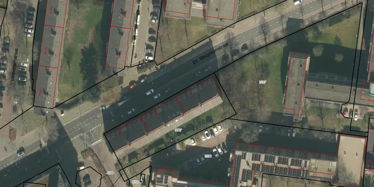 Dr. Struyckenstraat 13 is gelegen op kadastraal perceel PCH00I3387. Deze kadastrale aanduiding is uniek en wordt gebruikt door het Kadaster om eigendomsrechten en andere zakelijke rechten vast te leggen. Het perceel maakt onderdeel uit van de kadastrale gemeente Princenhage.
