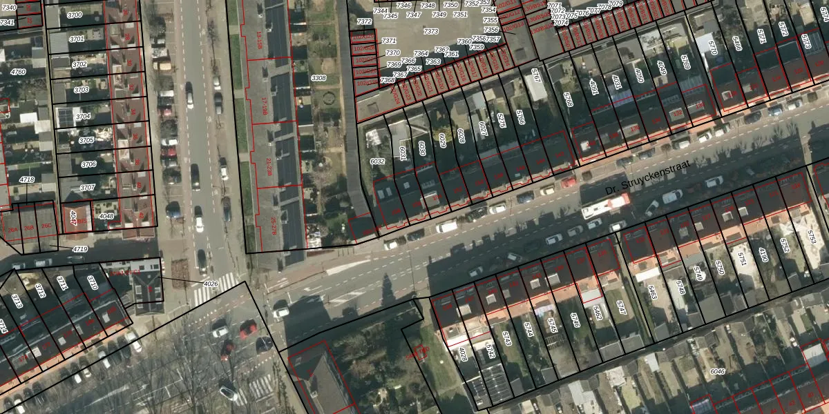 Het perceel waarop Dr. Struyckenstraat 156 staat heeft een oppervlakte van 143 m². Dit is een middelgroot perceel. De perceeloppervlakte wordt geregistreerd door het Kadaster. Gedetailleerde informatie over de maten van dit perceel kunt u vinden in het rapport Kadastrale kaart met maatvoering van Dr. Struyckenstraat 156.