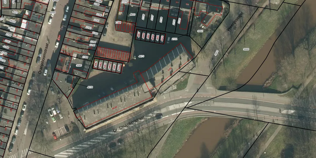 Dr. Struyckenstraat 56 is gelegen op kadastraal perceel PCH00I4473. Deze kadastrale aanduiding is uniek en wordt gebruikt door het Kadaster om eigendomsrechten en andere zakelijke rechten vast te leggen. Het perceel maakt onderdeel uit van de kadastrale gemeente Princenhage.