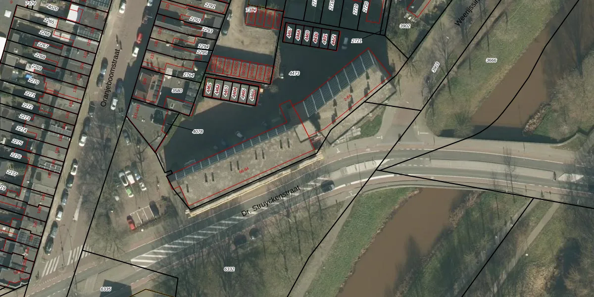 Dr. Struyckenstraat 68 is gelegen op kadastraal perceel PCH00I4473. Deze kadastrale aanduiding is uniek en wordt gebruikt door het Kadaster om eigendomsrechten en andere zakelijke rechten vast te leggen. Het perceel maakt onderdeel uit van de kadastrale gemeente Princenhage.