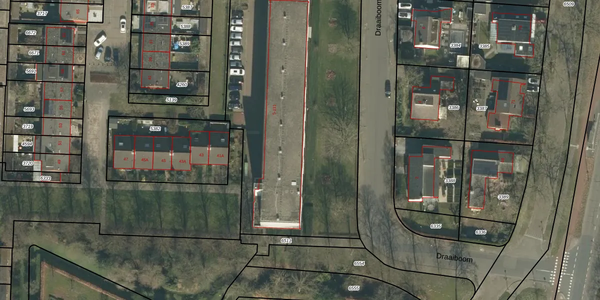 Het perceel waarop Draaiboom 101 staat heeft een oppervlakte van 4828 m². Dit is een zeer groot perceel. De perceeloppervlakte wordt geregistreerd door het Kadaster. Gedetailleerde informatie over de maten van dit perceel kunt u vinden in het rapport Kadastrale kaart met maatvoering van Draaiboom 101.