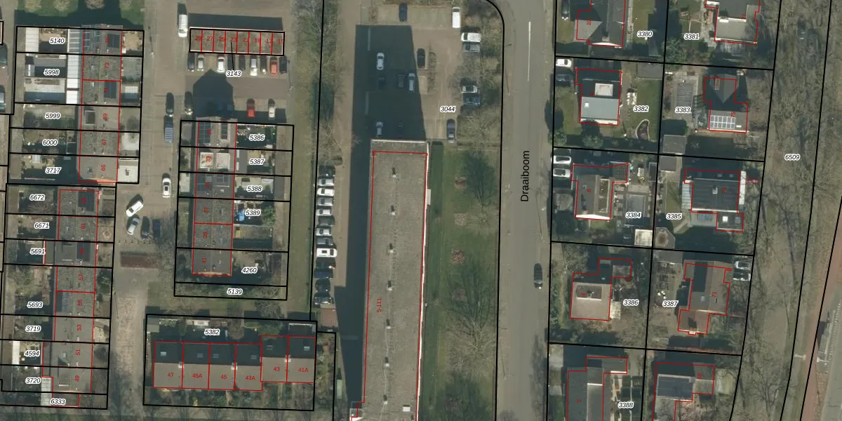 Het perceel waarop Draaiboom 109 staat heeft een oppervlakte van 4828 m². Dit is een zeer groot perceel. De perceeloppervlakte wordt geregistreerd door het Kadaster. Gedetailleerde informatie over de maten van dit perceel kunt u vinden in het rapport Kadastrale kaart met maatvoering van Draaiboom 109.