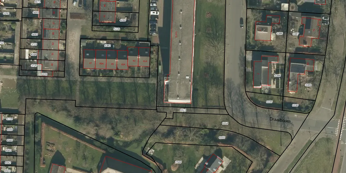 Het perceel waarop Draaiboom 17 staat heeft een oppervlakte van 4828 m². Dit is een zeer groot perceel. De perceeloppervlakte wordt geregistreerd door het Kadaster. Gedetailleerde informatie over de maten van dit perceel kunt u vinden in het rapport Kadastrale kaart met maatvoering van Draaiboom 17.