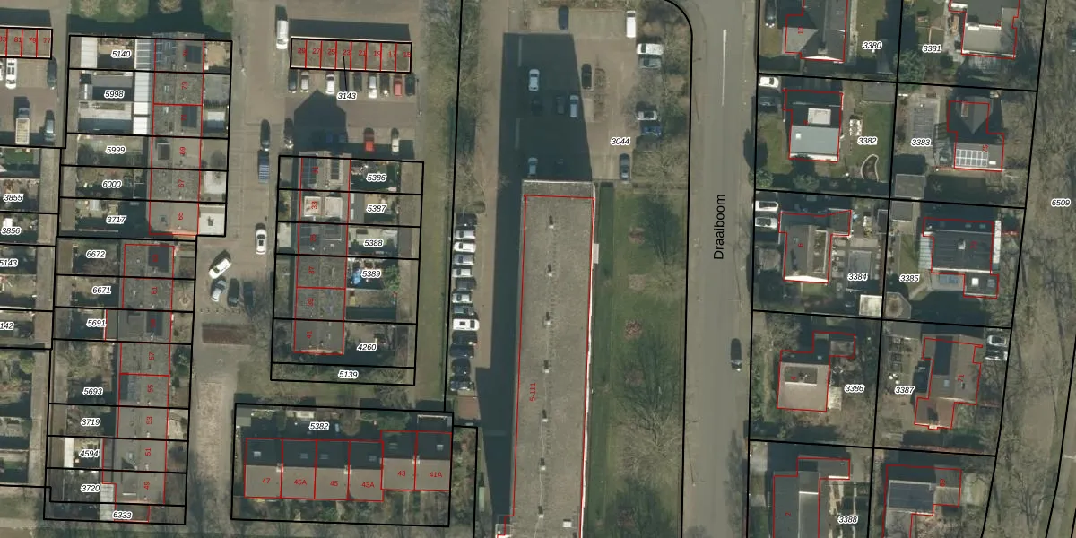 Het perceel waarop Draaiboom 29 staat heeft een oppervlakte van 4828 m². Dit is een zeer groot perceel. De perceeloppervlakte wordt geregistreerd door het Kadaster. Gedetailleerde informatie over de maten van dit perceel kunt u vinden in het rapport Kadastrale kaart met maatvoering van Draaiboom 29.