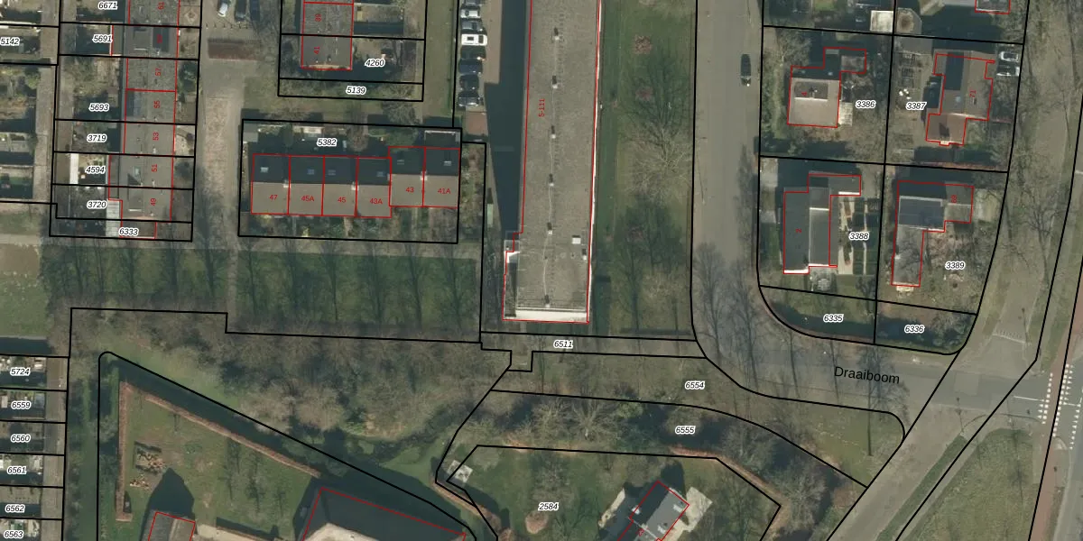 Het perceel waarop Draaiboom 33 staat heeft een oppervlakte van 4828 m². Dit is een zeer groot perceel. De perceeloppervlakte wordt geregistreerd door het Kadaster. Gedetailleerde informatie over de maten van dit perceel kunt u vinden in het rapport Kadastrale kaart met maatvoering van Draaiboom 33.