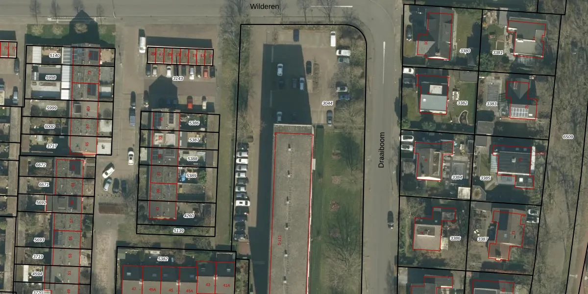 Het perceel waarop Draaiboom 63 staat heeft een oppervlakte van 4828 m². Dit is een zeer groot perceel. De perceeloppervlakte wordt geregistreerd door het Kadaster. Gedetailleerde informatie over de maten van dit perceel kunt u vinden in het rapport Kadastrale kaart met maatvoering van Draaiboom 63.