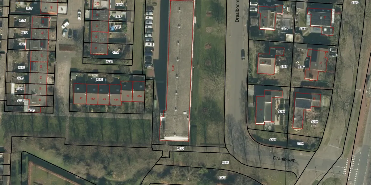 Het perceel waarop Draaiboom 85 staat heeft een oppervlakte van 4828 m². Dit is een zeer groot perceel. De perceeloppervlakte wordt geregistreerd door het Kadaster. Gedetailleerde informatie over de maten van dit perceel kunt u vinden in het rapport Kadastrale kaart met maatvoering van Draaiboom 85.