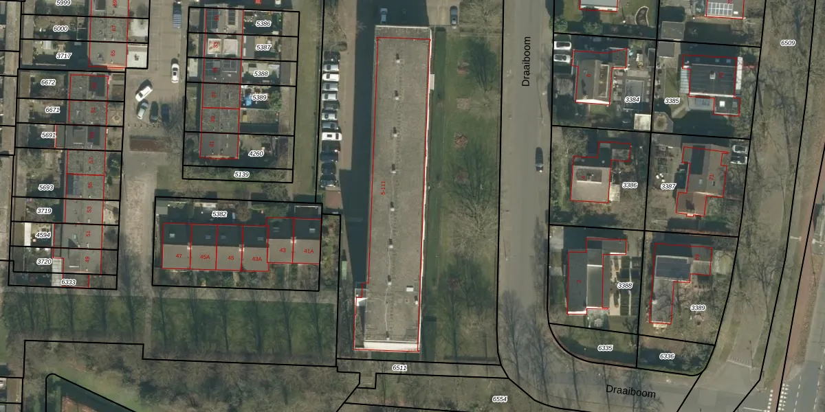 Het perceel waarop Draaiboom 87 staat heeft een oppervlakte van 4828 m². Dit is een zeer groot perceel. De perceeloppervlakte wordt geregistreerd door het Kadaster. Gedetailleerde informatie over de maten van dit perceel kunt u vinden in het rapport Kadastrale kaart met maatvoering van Draaiboom 87.