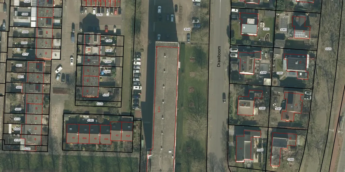 Het perceel waarop Draaiboom 91 staat heeft een oppervlakte van 4828 m². Dit is een zeer groot perceel. De perceeloppervlakte wordt geregistreerd door het Kadaster. Gedetailleerde informatie over de maten van dit perceel kunt u vinden in het rapport Kadastrale kaart met maatvoering van Draaiboom 91.